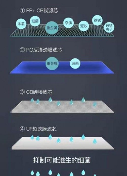 在凈水方面,它擁有四級高效過濾,能夠有效濾除重金屬、水垢、余氯等有害物質(zhì),首先通過PP+CB碳濾芯,能有效濾除鐵銹,泥沙等小顆粒二次污染物;緊接著RO反滲透膜濾芯可以分離除水分子以外的小分子雜質(zhì); 同時可以根據(jù)水質(zhì)情況,選擇第二種搭配模式——搭配立升超濾膜濾芯,作為立升自主研發(fā)核心技術(shù)超濾膜,其過濾精度達0.01微米,高效分離水中細菌、膠體、大分子有機物、小顆粒固體雜質(zhì)等,并保留有益的礦物質(zhì)微量元素,處理后的水已達安全可直飲標準。隨后,CB碳棒濾芯能夠?qū)⑺袣埩舻挠嗦龋愇叮惿冗M一步過濾提升口感,最后的UF超濾膜濾芯過濾精準度高達0.01微米,能夠有效防止碳粉泄漏和細菌微生物入侵等安全隱患。