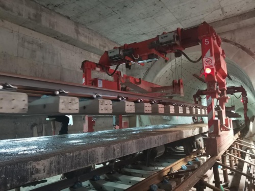 “自進場以來,項目部先后集結500余人,投入鋪軌機23臺、軌道車7臺,焊軌機組2組,于5月19日實現海底軌道雙線貫通目標,期間項目部創造了單日鋼軌焊接780米、單日整體道床澆筑482米的高產成績。另外,項目部還投入使用了新能源鋪軌機、移動式鋼軌中頻正火車等新工裝,在提高施工效率的同時,踐行了綠色環保施工理念,為‘雙碳’達標作出了一定的貢獻。”中鐵一局項目負責人賀建鋒介紹道。