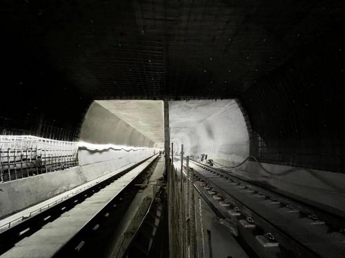 5月19日,在大連地鐵五號線正線海底大盾構段火車站站-梭魚灣南站區間,由中國中鐵一局員工操作的新能源鋪軌機將最后一節鋼軌鋪設完畢,標志著世界首例海域巖溶地層大直徑盾構隧道大連地鐵五號線海底隧道鋪軌雙線貫通,為全線軌道貫通奠定了堅實的基礎。