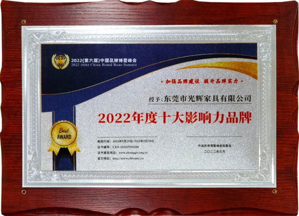“2022年度十大影響力品牌”主要在管理水平卓越、能夠影響并帶動同行業發展的企業之間進行評選,同時依據企業在品牌影響力、發展潛力、社會責任、誠信經營等方面,進行綜合考核。經組委會初評推薦、調研、專家團評審,最終敲定獲獎名單。此次評選中,光輝家居有幸獲得“2022年度十大影響力品牌”,即是業界對光輝家居綜合實力和未來發展潛力的肯定也是對光輝家居在行業內品牌公信力的高度認可。