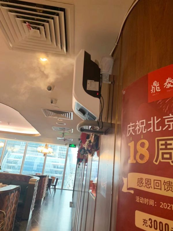 防控常態化階段,餐館不免存在人員聚集的情況。相較于每隔一段時間除菌一次,持續霧化除菌更省時省力。水神霧化加濕器搭配水神除菌液使用,20m3空間除菌率99.9%,對于空間比較大的鼎泰豐餐廳,在不同區域放上水神霧化器霧化水神除菌即可。除菌的同時給空氣加濕,且空氣中不會殘有次氯酸鈉消毒劑常有的刺鼻氣味,用餐環境更安全、客人用餐體驗也更佳。