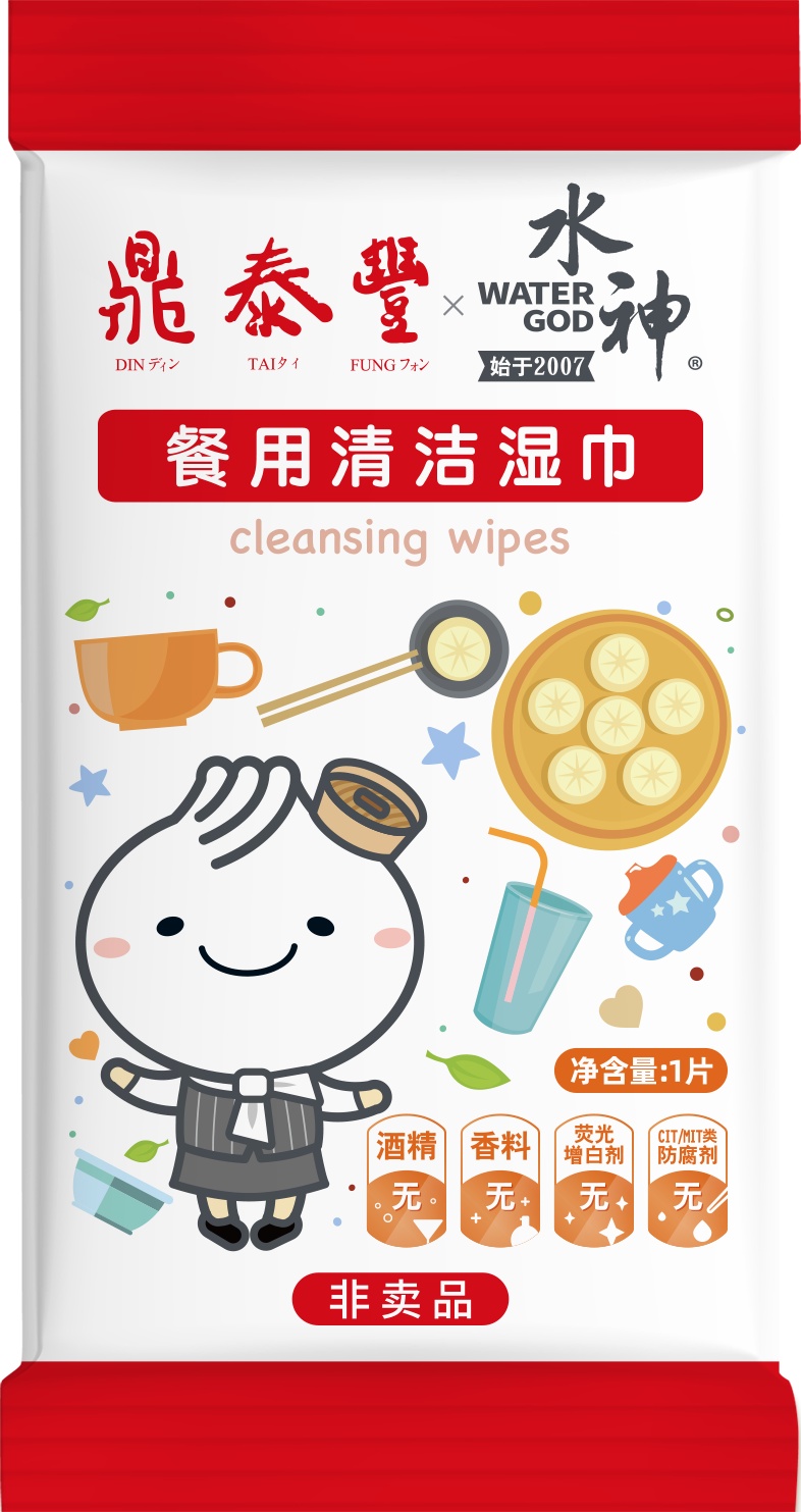專為鼎泰豐研發設計的鼎泰豐&水神聯名款餐用清潔濕巾已于2022年3月上新,獨立單片裝設計,隨用隨拆,干凈衛生。無熒光增白劑、無CIT/MIT類防腐劑、無酒精、無香精,安全不刺激,而且用完不留味道。飯前擦餐具、飯后擦嘴,觸感溫潤,帶給顧客柔和的親膚體驗!