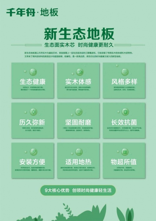 早在2002年黨的十七大報(bào)告中就明確提出了實(shí)現(xiàn)全面建設(shè)小康社會(huì)奮斗目標(biāo)的新要求,其中,“建設(shè)生態(tài)文明,基本形成節(jié)約能源資源和保護(hù)生態(tài)環(huán)境的產(chǎn)業(yè)結(jié)構(gòu)、增長(zhǎng)方式、消費(fèi)模式”,更是重中之重。千年舟深耕板材產(chǎn)品研發(fā)23年,基于板材行業(yè)及90后新興消費(fèi)市場(chǎng)的變化,根據(jù)23年的生態(tài)板材生產(chǎn)技術(shù)于經(jīng)驗(yàn),2022年首次將生態(tài)技術(shù)應(yīng)用于地板,“新生態(tài)地板”正式誕生:這是一款致力于打造兼具實(shí)木體感和生態(tài)技術(shù)特性的時(shí)尚健康又耐用的新品類地板,服務(wù)于新時(shí)代年輕人生態(tài)家居環(huán)境的生活需要,它又是怎樣當(dāng)之無(wú)愧的呢?