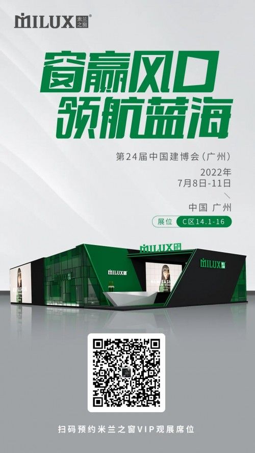 作為中國系統門窗行業的領軍品牌,米蘭之窗不斷引領中國門窗新風尚,此次展會不僅是米蘭之窗對產品工藝創新展示,更是在獨具影響力的行業舞臺彰顯品牌綜合實力的亮劍之行。2022年品牌首秀即將拉開序幕,行業盛世紛呈,7月8日-11日,中國進出口商品交易會展館(廣交會展館)C區14.1-16展位,米蘭之窗整裝待發,勢必領潮中國建博會,如約相”建“,聚享未來。