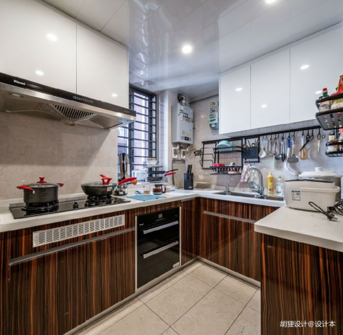 設計一個吊頂,可以充分利用到廚房上部的空間,不過廚房油煙重,所以吊頂不僅要考慮美觀,更要考慮清潔性,我們一般建議使用鋁扣板。