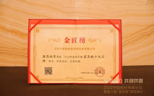 熱潮涌動,千帆競發。近日,澳思柏恩再次傳來喜訊,成功斬獲2022第八屆金匠榜“家具板十大品牌”榮譽。作為板材行業的標桿品牌,澳思柏恩此次能在眾多品牌中連續登上榜單,一舉斬獲“家具板十大品牌”殊榮,是對其品牌實力的最好見證,也是推動澳思柏恩品牌持續增長的源動力。