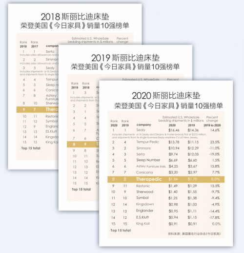 經(jīng)半世紀時光淬煉, THERAPEDIC 品牌以“恢復性睡眠”魅力贏得了全球消費者的青睞。連續(xù)多年穩(wěn)居美國權(quán)威雜志《今日家具》銷 量榜單前十品牌,并保持持續(xù)穩(wěn)定增長的態(tài)勢,美夢可期。