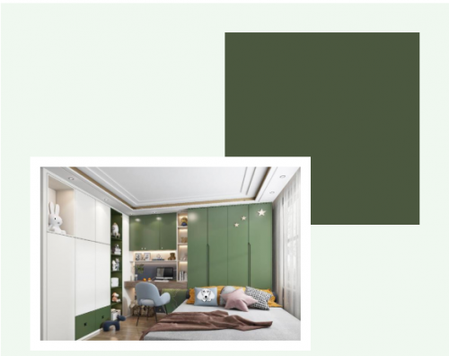 比起上世紀六七十年代無處不在的牛油果綠,“云棲竹韻”是一種帶有清新基底的綠色,更干凈,更鮮明,富有生機活力,非常適合兒童房的裝修。
