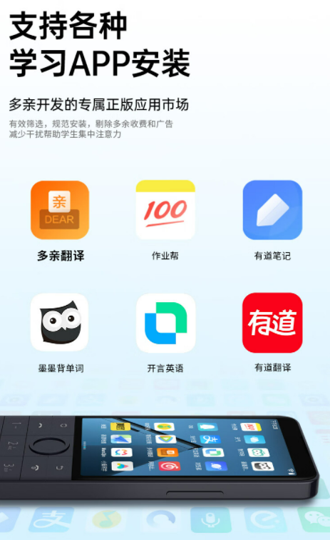 與此同時,多親 F22 Pro 還內置了一個干凈無廣告的正版 APP 商店,為孩子提供了足夠豐富的學習 APP,保證孩子學習時的優秀體驗。
