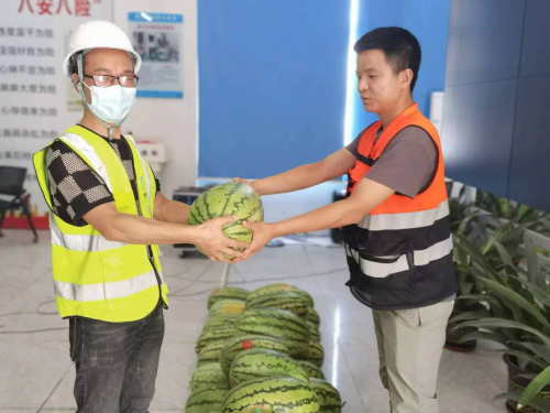 近一個半月的時間里,南方公司黨委副書記、紀委書記、工會主席吳國章前往事業部及各個一線項目,關心與慰問職工。慰問期間,吳國章為項目全體員工送上消暑飲品和冰鎮西瓜,與項目職工談心交流,了解實際的需求,并對他們的辛苦付出表示肯定與感謝,反復叮囑大家要提高夏日防暑意識,確保以健康的身體狀況來進行工作。同時,吳國章要求各項目部要守牢安全底線,做好高溫時節的各項工作,普及好防暑降溫和急救知識,確保廣大一線職工的健康與安全。