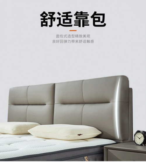 軟床相比于木床,最大的不同就在于它的舒適性。東寶軟床DB-PC103的外表采用超纖面料包裹,超纖面料觸感柔順,透氣親膚,耐磨耐用。床頭軟包采用高回彈超力棉填充,猶如一塊飽滿厚實的“法式面包”,給人以舒適倚靠。