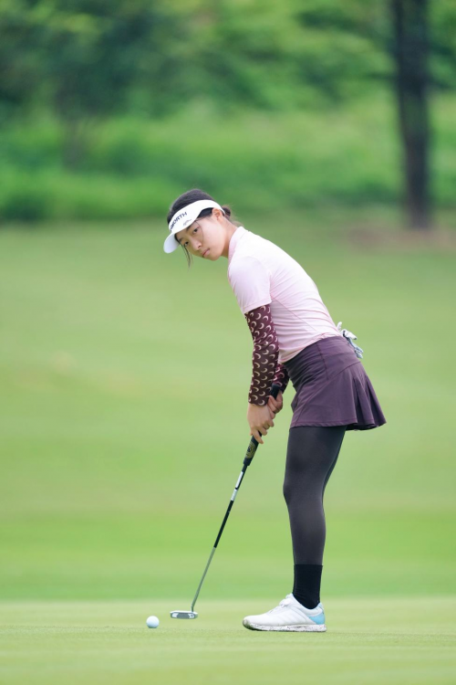 從10號洞出發的羅云溢,前九洞打得順風順水。在第12洞這個四桿洞,她第二桿將球攻上果嶺,球落點很好,距離洞杯僅6英寸,一推拿下,抓到小鳥,領先優勢一度達到5桿。