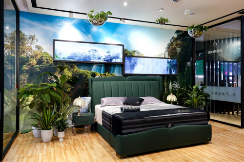 Simmons席夢思首創革命性負離子纖維科技床墊,由十四種礦物石濃縮壓制成長條后,再編織成負離子纖維。每一根細細的纖維上都分布了微小的自然礦物質,在每次睡眠翻身摩擦中,自然釋放負離子。躺在負離子床墊上,整夜都可以呼吸到清新空氣,一覺醒來神清氣爽。本次展會特別打造“負離子空間”概念展廳,讓席粉得以沉浸式體驗。