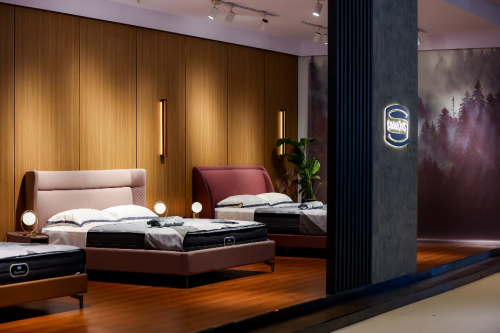 本次展會,參展的精品床墊分別來自品牌旗下三大門店系列,定位高端進口的Elite奢華系列的瑞蒂思,定位精品進口的Premier經典系列的哥倫比亞、欣爵,定位時尚年輕群體的Studio時尚系列的馨榮,悉數亮相。