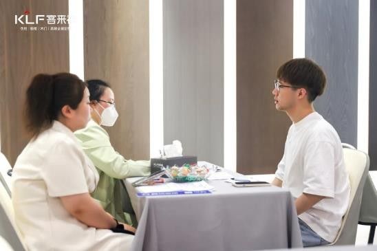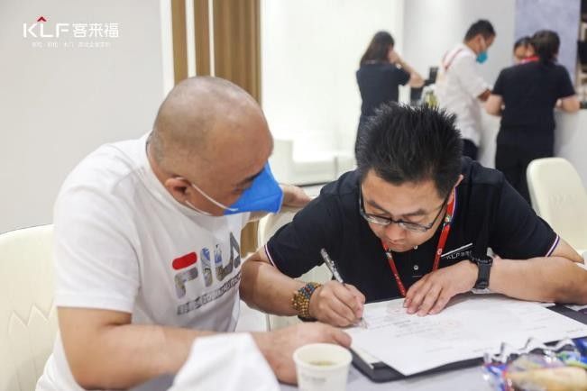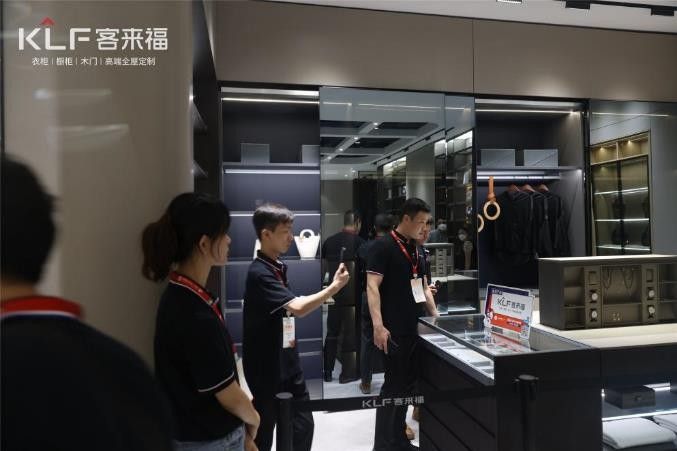 展會期間現場客商親身體驗了客來福·革物產品的精妙絕倫,對于無法來到現場的家人們,可以通過抖音線上客來福全屋定制官方賬號觀看實時直播,觀看客來福專業家裝設計師和總監為您介紹產品詳情和細節。