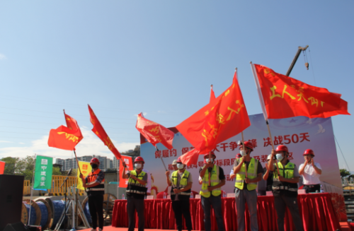 項目部將以此次勞動競賽為契機,以賽促建,圍繞工程建設總體目標,動員組織參建單位和全體參建員工,弘揚軍魂匠心精神,在安全生產的前提下,在項目上下全速掀起大干快上的建設熱潮,確保如期完成業主既定節點目標為福州市的城市發展交上一份完滿的答卷。最后,與會領導共同為一線工友發放工會慰問品。