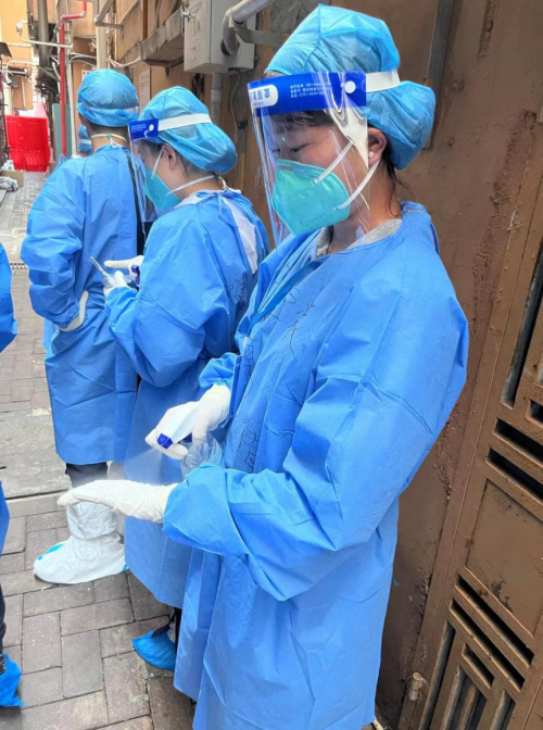 今天我們跟隨現(xiàn)場督導深入了疫區(qū),白天和晚上不一樣,口罩和面罩使得空氣更加悶熱,我們帶上“消暑神器”—消毒酒精,每經(jīng)過一個卡口,我們就需要用酒精對自己進行全面消殺,而酒精的揮發(fā)也能幫助我們消暑,保持正常體溫。