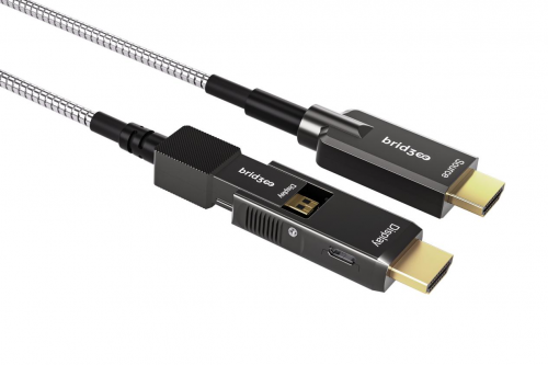 此次橋連無(wú)界?(bridgee)亮相分離式HDMI鋼甲光纖線——“PROF-H18DK”,一線解決集成商頭痛的布線穿管難題。產(chǎn)品具有堅(jiān)固耐用和易穿管兩大優(yōu)勢(shì),采用304不銹鋼線纜護(hù)甲和單端分離式插頭,專門攻克集成商施工項(xiàng)目中穿管困難、線纜破損、信號(hào)不通的難題。且最長(zhǎng)可達(dá)100米,滿足影院系統(tǒng)、視頻會(huì)議、租賃舞臺(tái)、仿真投影等各種大場(chǎng)景使用,