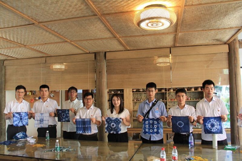 隨后黨員們一同前往羅源松山鎮竹里村。在松山鎮竹里村谷倉畫院,一行人參觀了畬風農民畫、扎染、特色陶藝等文創產品,體驗了具有畬族文化特色的扎染藝術及畬族特色舞蹈——竹竿舞,增加了對傳統手工織染文化的了解與認知,近距離感受畬族文化的獨特魅力和畬家的別樣風情。更加深切地感受到中華民族博大精深的歷史文化。