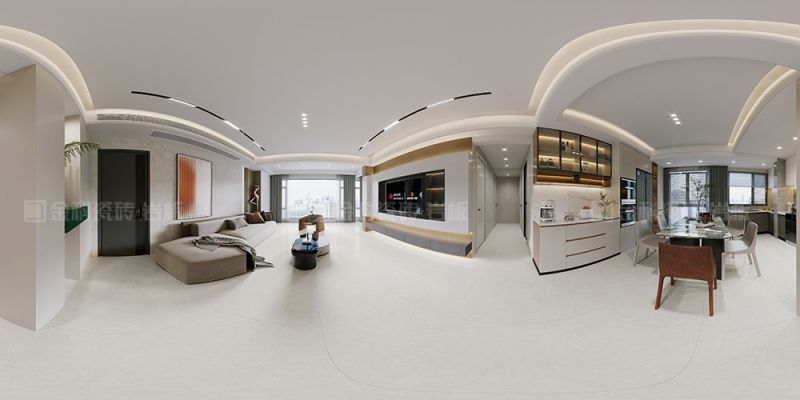 磚面色調(diào)柔和,紋理縹緲且充滿質(zhì)感,宛如一幅平和的自然畫卷流淌于空間之中,整個空間溫婉時尚,細膩的觸感更提升了空間的高級感。