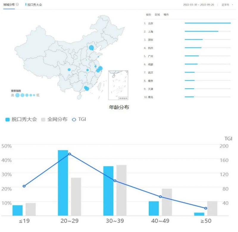 百度指數(shù) 脫口秀大會(huì)觀眾地域分布、年齡分布