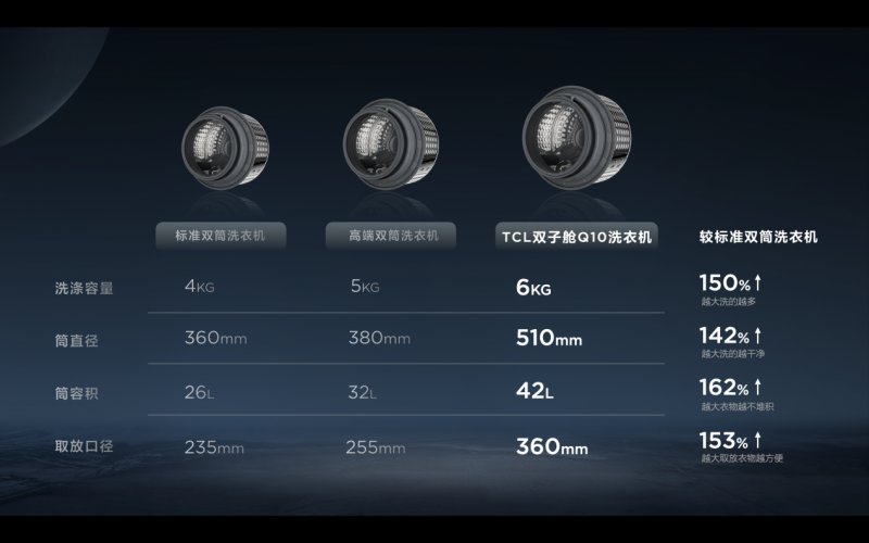 為了突破行業極限,TCL科研團隊為擴大上筒容量付出了巨大的心血,以獨具匠心的巧思,攻克了容量升級的技術難點。