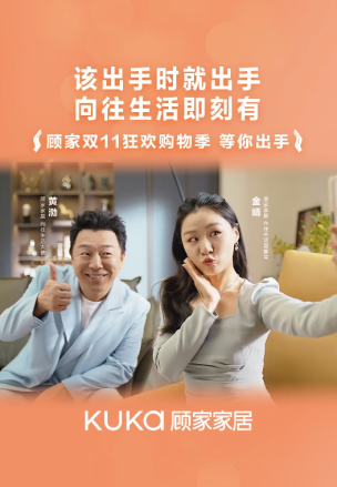 熟悉的曲風,加上魔性的歌詞,《出手歌》將顧家「向往生活“出”手可得」的概念與歌曲融合,當消費者看完視頻,便能輕松哼唱,以音樂作為媒介,從而記住顧家家居雙11的賣點,直達心智深處。再加上黃渤和金靖這兩位全民熟知的實力派的演繹,更加深入人心。他們優質的選劇口碑,讓顧家產品的賣點更具影響力與可信力,同時他們倆的結合讓這部短片在視覺上更具有沖擊力,進一步提升了短片的風趣度,有效地帶動消費者情緒,加深TA對顧家家居雙11「向往生活“出”手可得」概念的認知。