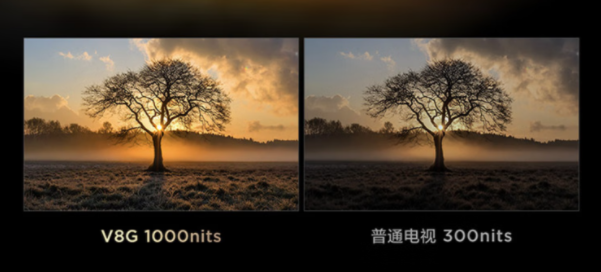 TCL V8G全系標配百級背光分區,最高擁有1000nits的峰值亮度表現,要知道這可是建立在50英寸電視僅有2199元到手價基礎上的,同尺寸、同價位,如此誠意滿滿的配置僅以一家。在電視圈有個所謂的“黑話”叫做一亮遮百丑,也形象地展示了電視亮度表現對于畫質的幫助。畢竟更亮的屏幕就能有效展現出畫面中的高光區域,像是日出、夜晚的車燈等等,都更具真實感,不會出現所謂的屏幕發白等問題。
