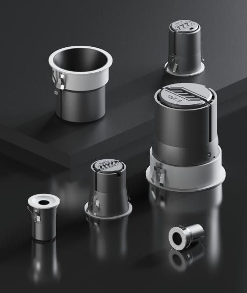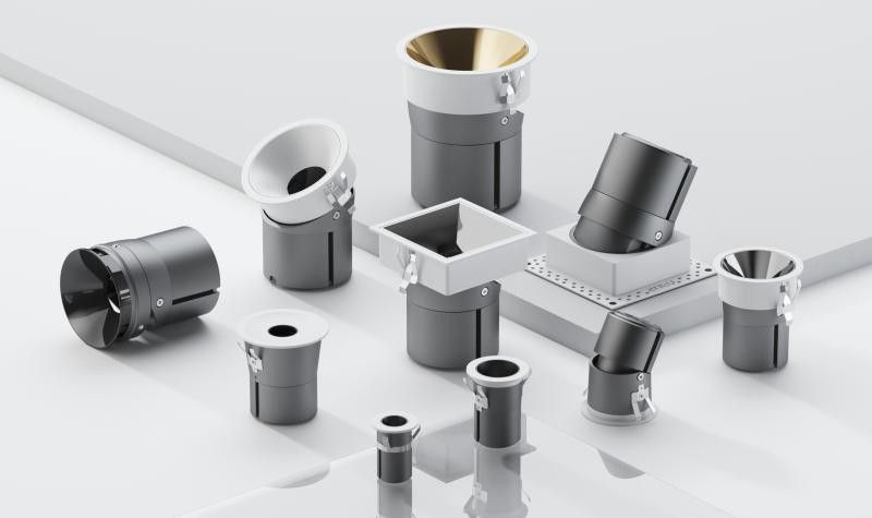 三峰照明銳志II系列射燈為了更好地適應不同的安裝要求,提供了Φ25mm、Φ35mm、Φ45mm、Φ55mm、Φ75mm、Φ95mm六種開孔尺寸。摒棄了高度的束縛,其中有專門的矮燈體防眩燈具, 開孔Φ55mm高度50mm、開孔Φ75mm高度60mm。Φ35mm、Φ45mm、Φ55mm搭配開孔小圓孔射燈,延續(xù)添智系列天圓地方設計理念,采用內凹弧面設計,線條簡約美觀。