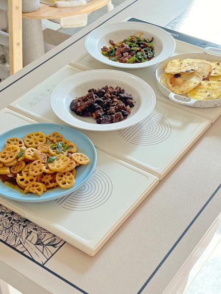 答案就是暖菜板,也叫飯菜保溫板。它是一款能持續(xù)發(fā)熱的板子,只要把做好的飯菜放在暖菜板上,調節(jié)好溫度和想保溫的時間,就能給碟子上的飯菜加熱保溫。