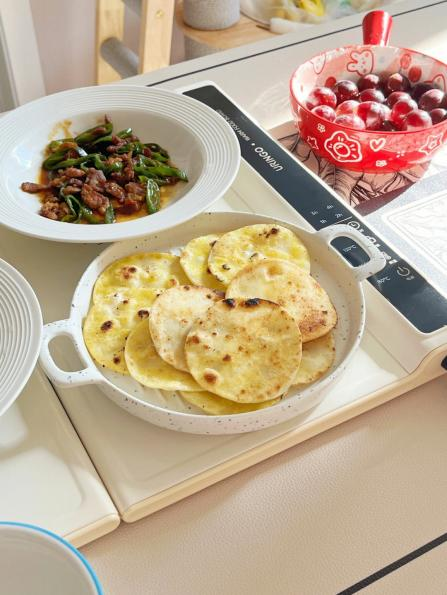 傳統(tǒng)暖菜板有圓形的、方形的,但是太大塊,平時收納起來會比較困難,而且還會占地方;逐漸地,可以折疊的暖菜板,收納起來更占優(yōu)勢,但是每次用的時候,都要把三塊板都用上,如果平時2個人吃飯的話,板子又太多了,開著又浪費電;如果遇上聚餐,三塊板子也不太夠用。