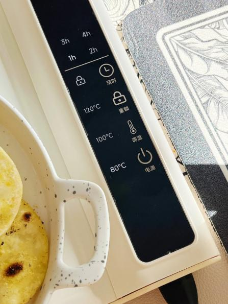 七彩叮當暖菜板有3個檔位的溫度控制,一般80℃可以用來解凍、暖茶;100℃暖奶,保溫;120℃快速加熱。還有4個定時的檔位,1/2/3/4個小時定時,可以控制使用的時間。