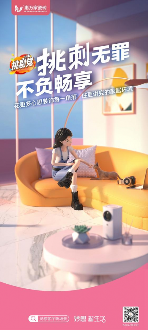 每一個選擇的背后都將導向每一個個體對于生活該如何「有意思地過」的差異化需求。2022年,惠萬家瓷磚精準洞察到用戶渴望擁抱新生活的情感需求,以「新生活該有的樣子」為內核,重磅打造一套「妙想新生活」全新場景系列,跟隨天馬行空的暢想,就能找到自己心水的寶藏新生活和精致好物,構筑值得我們去好好感受的新生活。