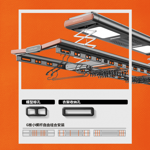 例如極具美學視覺效果的創(chuàng)新晾孔,1個蝶型晾孔其實相當于2個常規(guī)晾孔。其實千萬不要小看這個細節(jié)的革新,不但讓晾曬衣物翻倍,還起到美觀顏值的作用。并且4個衣架收納孔、6根自由橫桿、4排母嬰夾,這些元素的增加,使得晾衣機更加實用,是對產(chǎn)品的更進一步的深究和鉆研。