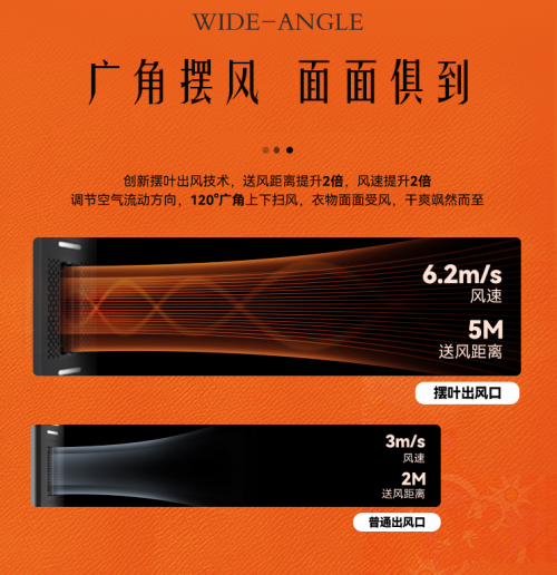 傳統(tǒng)晾曬衣服離不開陽光、溫度,一方面可以有效的殺菌,另一方面可以快速的曬干。但是這款好太太GW-160智能晾衣機因為開創(chuàng)性的研發(fā)出了擺葉出風技術(shù),送風和風速均提升于市場上常見的晾衣機2倍之多,隨意調(diào)節(jié)空氣吹動方向,角度擴至120°廣角,使得晾曬衣物雙面均可受到風吹,快速干爽,無懼天氣影響。