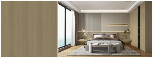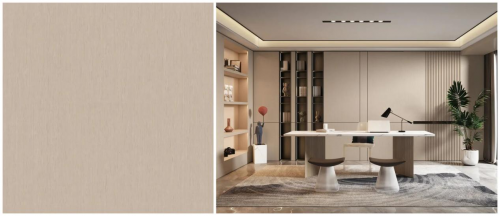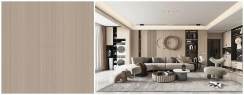 類似竹節(jié)的紋理夾帶著與駝色相近的低飽和度原木花色,自帶回歸自然的氣息的滄桑感,使得整體色彩趨近柔和、淡雅,又透露著一份淡淡的治愈力。風(fēng)格百搭自然柔和,搭配上鄰近色系,給予空間足夠溫柔舒緩的氣息。