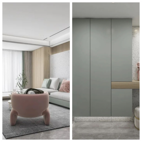 千年舟飾能板飾面系列,板材厚度偏差±0.15mm。同時,板材表面細膩超平整,能滿足多種不同表面工藝效果:UV光固化、PET、三胺紙純色等,滿足各類主流家裝風格趨勢,讓家的顏值提升不止一個檔次!