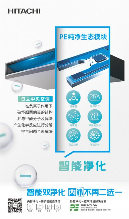 如何平衡取暖與健康呼吸的需求?日立SET-FREE智享系列搭載雙凈化功能,向外凈化空氣,通過PE純凈生態模塊釋放的負離子,去除甲醛、PM2.5、異味等六大污染物,全面凈化室內空氣;向內可進行空調自清潔,通過預處理-結霜-清潔-烘干四步,完成空調“自己洗澡”,由內而外打造潔凈好空氣。