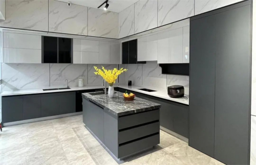 黑白搭配的櫥柜設計簡約而又不失人間煙火氣,大多為簡單的直線,橫平豎直,減少了不必要的裝飾線條,用簡單的直線強調空間的開闊感,色調偏冷,又給人清爽之感。