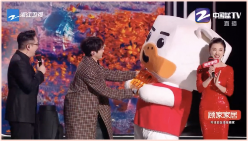 此外,顧家家居還把多款產(chǎn)品搬到了晚會現(xiàn)場,通過擔(dān)任節(jié)目助演、提供休息解壓間,吉祥物顧家牛牛化身幸運大使送幸運禮物等多種形式,將“美好生活”具象化,傳遞給萬千消費者。