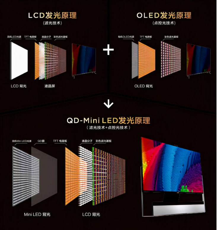 TCL X11采用的是一種叫做QD-Mini LED的顯示技術(shù),據(jù)說是目前行業(yè)最先進的,最大價值在于可以讓屏幕可以實現(xiàn)10億級的色彩,也讓色域更廣、使用壽命更久,而且還有2304個分區(qū)量子點控光、2000nits的峰值亮度,以及高達1000萬:1的超感知對比度和98% DCI-P3廣色域,這配置確實算是行業(yè)頂級了。