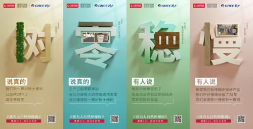 活動海報設計巧妙融合了大自然地板構筑的生活場景與各種木紋,還有消費人群最喜愛的年度爆款推薦,三層實木、多層實木等主打產品推薦。同時,給用戶普及了綠色環保產品的特征,如生產過程零醛添加,這不僅能保護人體健康,還能減少土壤水體污染等環境問題。從物質層面到精神層面,讓人們感受到大自然地板在環保這件事上確實“沒開玩笑”。28年專注綠色健康產品,16年堅持公益種樹,“砍一棵樹種十棵樹”的品牌承諾多年來已經化為大地上的綠意。
