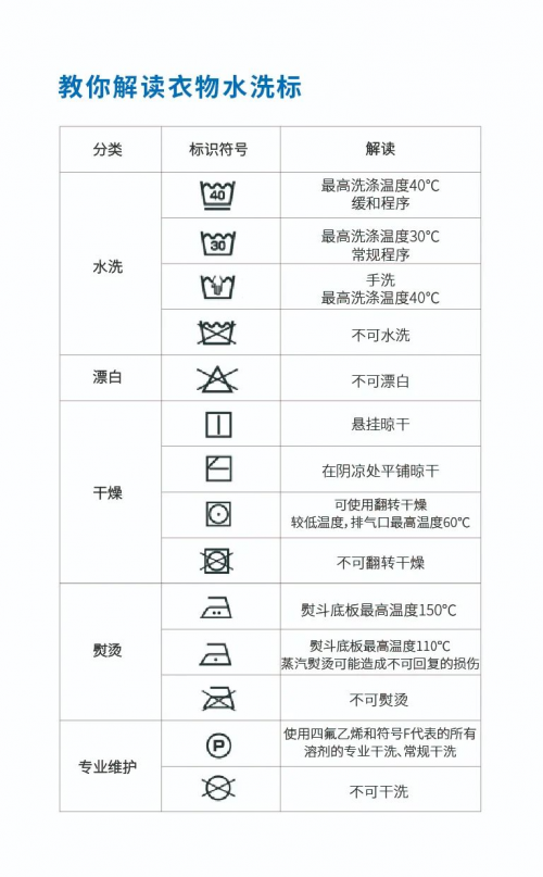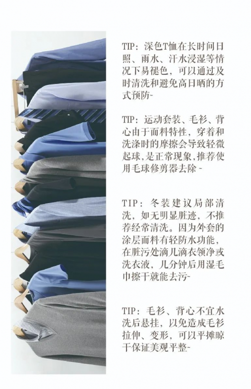 以下,我們給大家整理了洗滌保養小貼士,也適用于其他服飾保養,供大家參考。