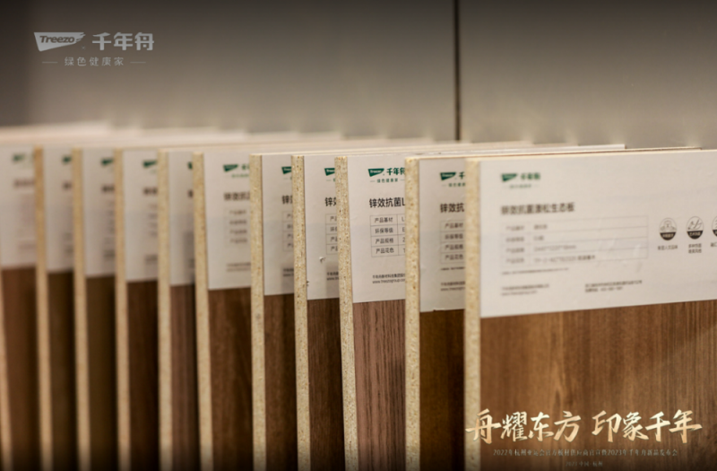 秉持“為人民造一張好板”的初心,圍繞“健康、科技、風尚”品牌主題,千年舟攜2023年鋅效抗菌2.0生態板、家具樂凈生態板、LSB高定專享板、新型難燃OSB板四大板材新品在“閃耀東方,印象千年”發布會現場驚艷亮相,持續以科技實力詮釋了“科技讓生活更美好”。