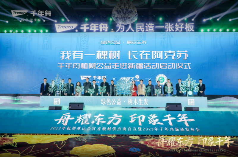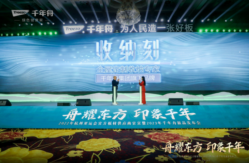 活動現場,在政府領導、協會專家、同行代表、合作伙伴、媒體代表等共計1000余人的共同見證下,千年舟牽手亞運,正式官宣“杭州亞運會官方板材供應商”身份,開局就掀起高潮。