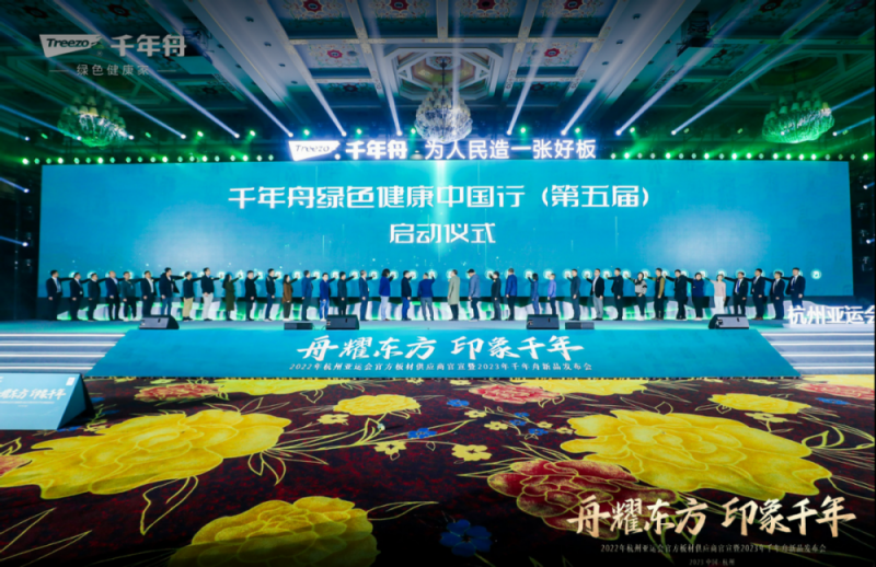 時代的洪流推動環保理念不斷升級,國民健康意識與日俱增,國民品牌的千年舟步履不停,矢志不移探索健康家居生活。2月21日,杭州亞運會官方板材供應商官宣暨2023年千年舟新品發布會在杭州·蕭山太虛湖假日酒店盛大啟幕。