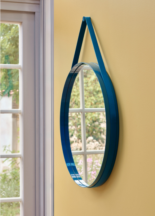 Strap Mirror采用簡(jiǎn)約的設(shè)計(jì),編織帶嵌于邊緣凹槽中,可以輕松地將鏡子安裝在墻上,其簡(jiǎn)潔的圓形設(shè)計(jì)使其成為懸掛在浴室、臥室和入口大廳的理想選擇。
