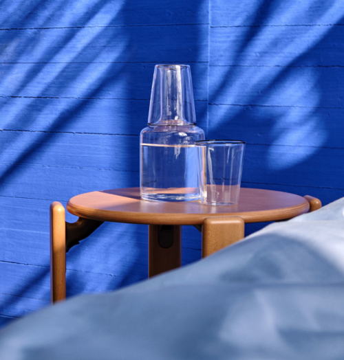 Rim Carafe有一個(gè)細(xì)長(zhǎng)的漏斗狀頸部,頂部是鑲邊設(shè)計(jì),它是一個(gè)集裝飾和功能于一體的器皿。這款優(yōu)雅的玻璃瓶既可以單獨(dú)使用,也可以和配套的Rim Glass杯子一起使用。杯子被巧妙設(shè)計(jì)成可扣置于水瓶上的造型,便于手拿飲料從一個(gè)房間走到另一個(gè)房間。
