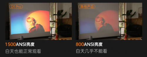 一塊定制的顯像屏,將微果D1 Pro的整機(jī)亮度提升到了前所未有的1500 ANSI 流明,在此之前,LCD投影產(chǎn)品的亮度很難達(dá)到1000 ANSI 流明。而亮度的提升對(duì)于用戶觀影體驗(yàn)的增強(qiáng),是顯而易見(jiàn)的,白天不用關(guān)窗,晚上看得更清。