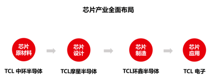 此外,在高速發展自研技術的同時,TCL還通過產業鏈投資不斷壯大自身的科技硬實力,除了我們熟知的華星光電之外,TCL近年來還投資了多家半導體企業,通過中環半導體、摩星半導體、環鑫半導體等企業,TCL已經實現從上游的芯片材料到中游的芯片設計與芯片制造,再到下游的芯片應用全產業鏈布局,成為我國首家半導體芯片全產業鏈布局企業,踏出了“國產芯”關鍵一步。